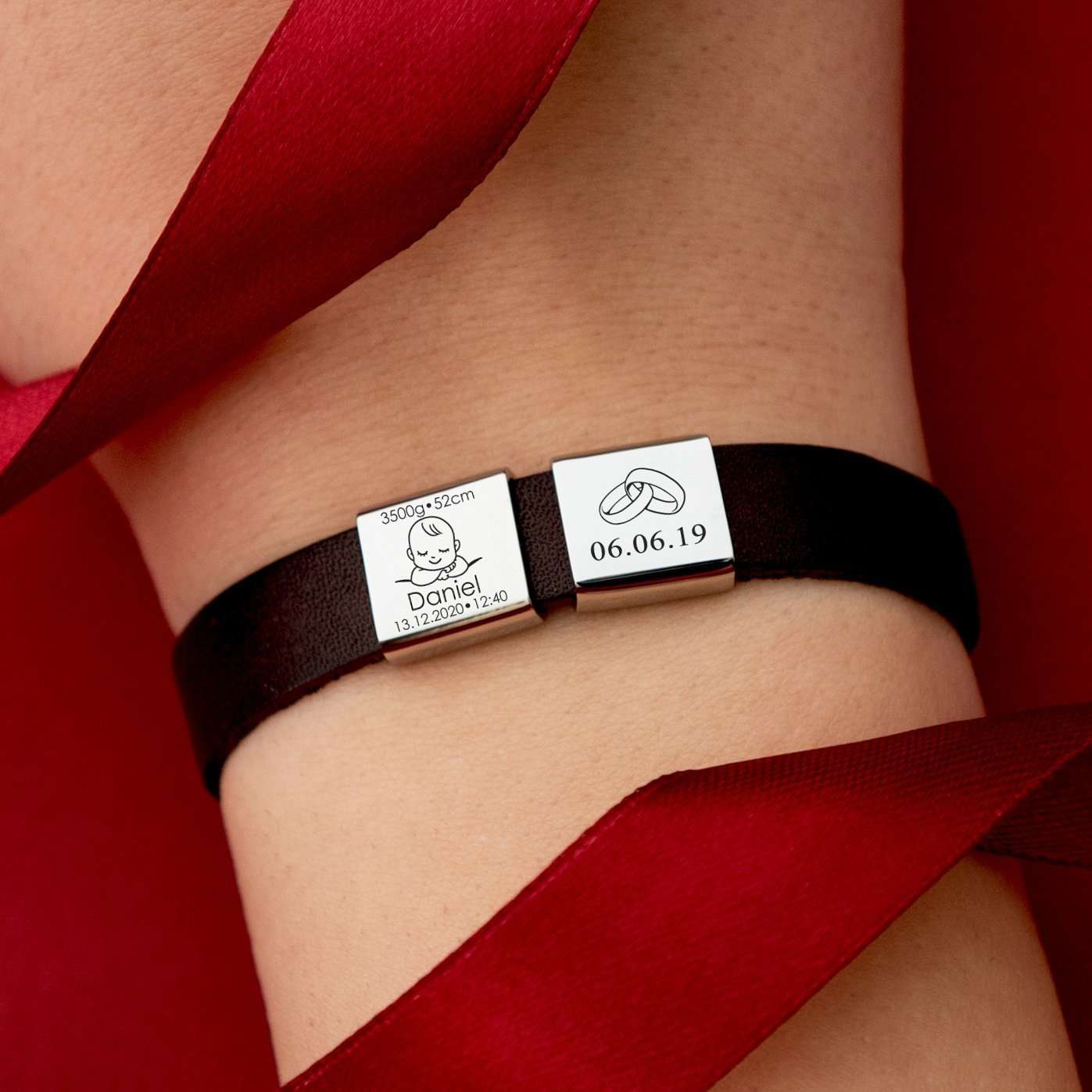 ▸ Armbandets material: Läder, spegelpolerat rostfritt stål