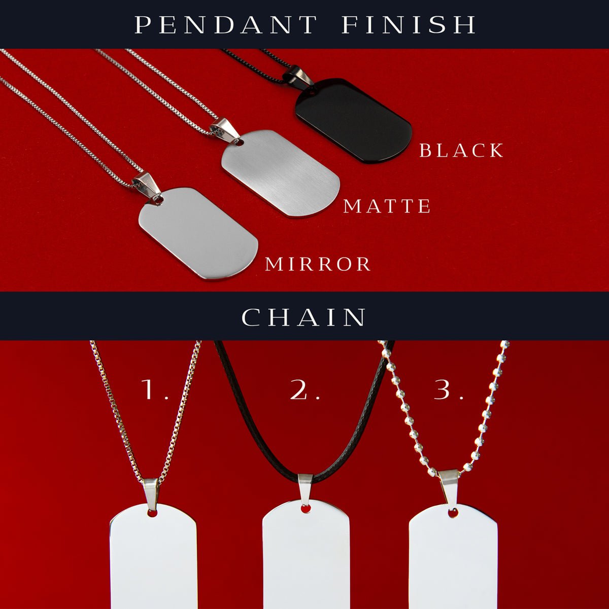 ▸ Długość łańcuszka: Łańcuszek ze stali nierdzewnej 51-55 cm, rzemień skórzany 65 cm, łańcuszek kulkowy 65 cm